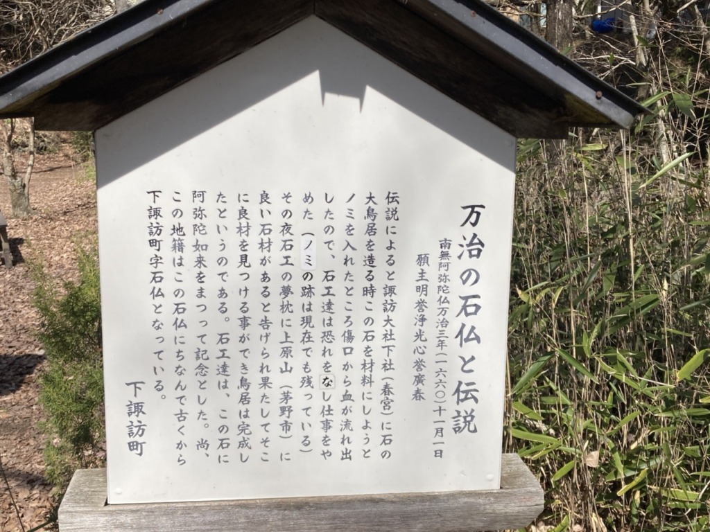 万治の石仏(長野県・諏訪郡 下諏訪町)2026年3月30日 万治の石仏(長野県・諏訪郡 下諏訪町)・長野県諏訪郡下諏訪町社133・「万治の石仏」バス停からすぐそこ。 [ おまいり津々浦々 ]に戻る [ おまいり津々浦々 ]に戻る 未分類モニュメント,長野県Posted by イェンティー